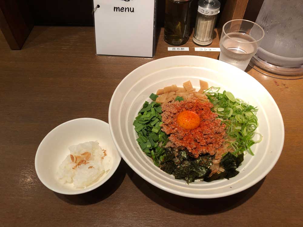初めは「台湾ラーメン」にハマって梅田にくるとこの店にくる事が多かったんですが、現在は「まぜそば派」。